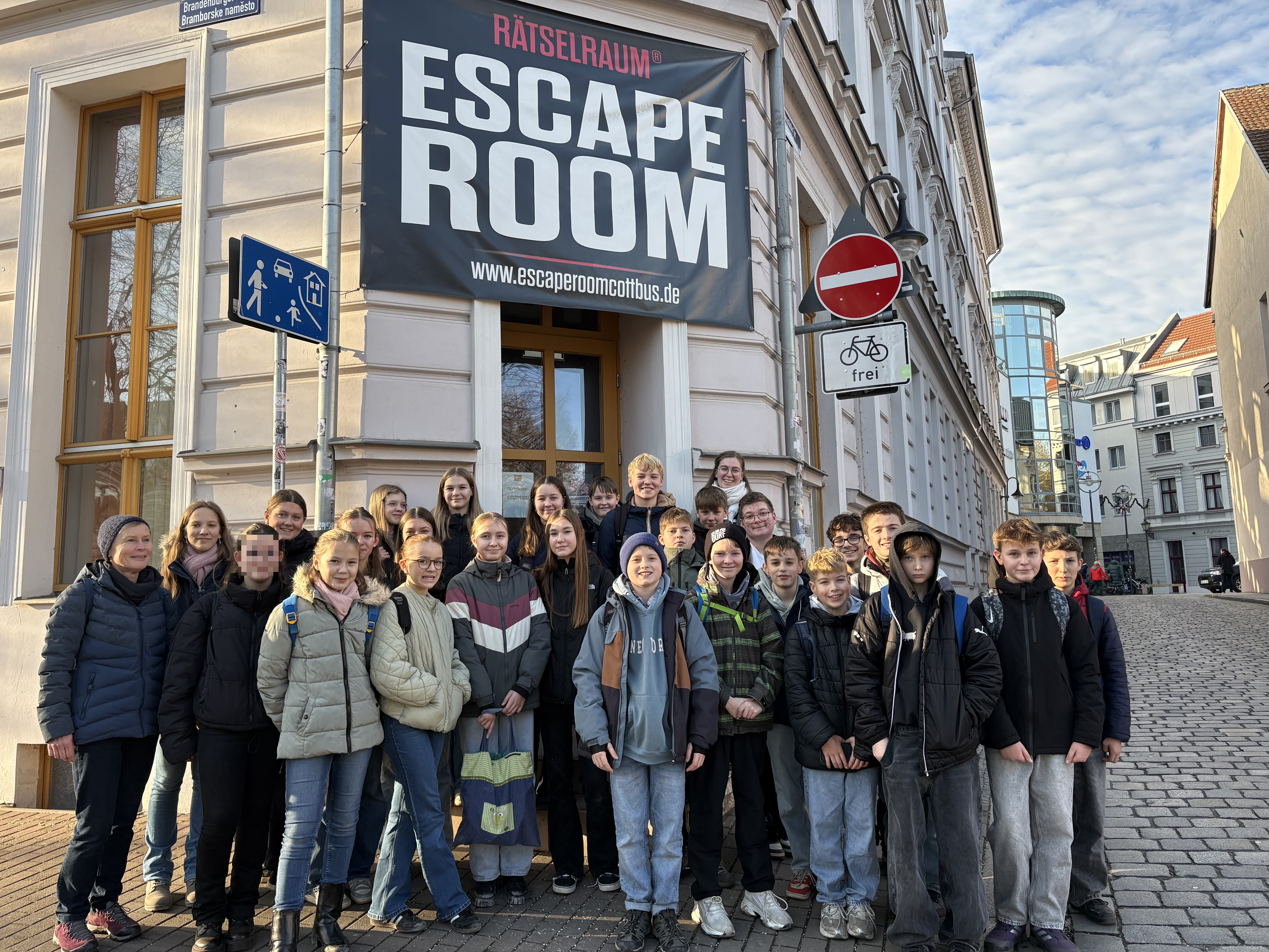 Am 12.Dezember 2025 machte sich die Klasse 7b, mit dem Zug auf den Weg nach Cottbus, um dort einen besonders spannenden Wandertag zu erleben. Schon die gemeinsame Fahrt sorgte bei allen Beteiligten für gute Laune. In Cottbus angekommen, teilten wir uns in vier Gruppen, da unser Wandertag aus zwei verschiedenen Aktionen bestehen sollte. Während eine Gruppe zunächst den Escape Room besuchte, erkundete die andere Gruppe den Cottbuser Weihnachtsmarkt. Anschließend wurden die Gruppen getauscht, sodass alle Beides erleben durften. ![]() |