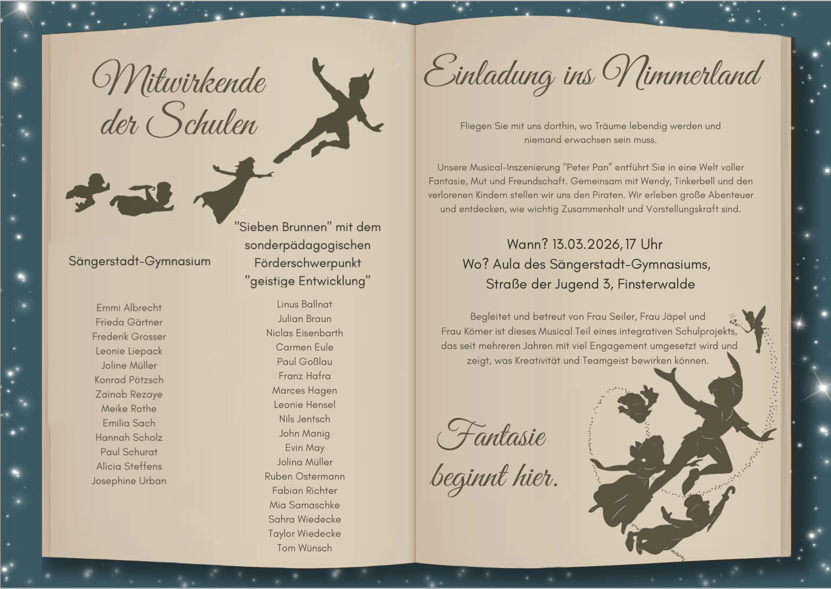 Am 04.12.2025, dem Projekttag der Seminarkurse 11 des Sängerstadt-Gymnasiums Finsterwalde, führten wir im Probenzentrum des Staatstheaters verschiedene Improvisations- und Theaterübungen mit der Theaterpädagogin Leonie Arnhold und unserer Kursleiterin Doris Seiler durch.