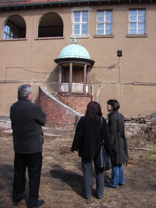 Die stellvertretende Schulleiterin Andrea Pukrop und Oberstufenkoordinator Detlef Kautz konnten sich ein Bild machen von den neuen, modernen Bedingungen für die Schule. „Schüler und Lehrer bekommen hier ein besonderes Kleinod, unsere Unterrichtsarbeit wird ungemein davon profitieren“, sind sie sich sicher und freuen sich auf die Fertigstellung. Sieben Unterrichtsräume für Deutsch, Kunst und Musik, die Schulverwaltung, die Schulspeisung im Kellergeschoss und eine Bibliothek wird das Jugendstilgebäude beherbergen. Der ursprüngliche Arkadenbereich wie die alte Eingangshalle und Reliefs werden wieder hergestellt, vermauerte Fensterfronten ihre ursprüngliche Form erhalten. Moderner Aufzug, Notfalltreppe, behindertengerechte Zugänge und Sanitärbereich stellen die moderne Funktionalität sicher. Gemeinsam mit dem jetzigen Taut-Schulgebäude in der Straße der Jugend und einer beide Gebäude einbeziehende Außengestaltung soll bis spätestens 2013 ein attraktiver Schulcampus entstehen.