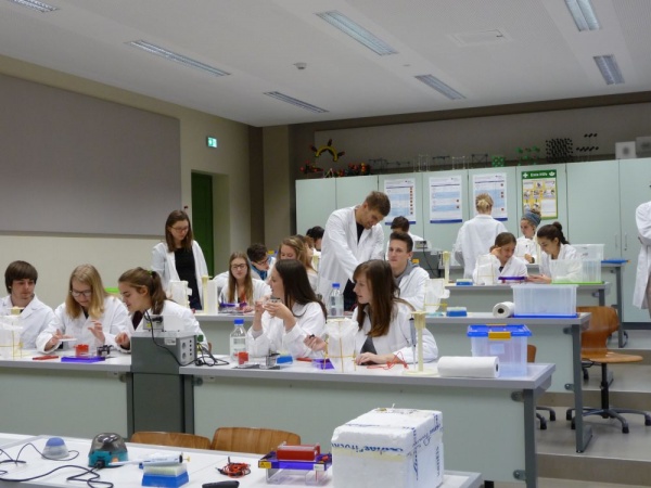 Am Dienstag, dem 29.10.2019 und Mittwoch, dem 30.10.2019 besuchte uns die BTU Cottbus-Senftenberg mit ihrem Programm "Science on Tour". Am Anfang des Projekts erhielten wir eine kurze theoretische Wiederholung des genetischen Fingerabdrucks. Danach begann für uns der praktische Teil. In Gruppenarbeit sollten wir anhand verschiedener DNA-Proben, welche an einem fiktiven Tatort gefunden wurden ermitteln, wer der Täter war. Das gleiche Verfahren wird von der Polizei verwendet, um zweifelsfrei Täter nachzuweisen. Das Ergebnis unseres Verfahrens wurde mit Hilfe eines Farbstoffs sichtbar gemacht und durch das entstandene DNA-Bandenmuster konnten wir den Täter überführen. Dieses organisierte Projekt soll dazu dienen, Schülern das biochemische Experimentieren und die daraus folgende Freude an naturwissenschaftlichen Verfahren zu wecken. Gleichzeitig wurde uns die BTU Cottbus-Senftenberg näher gebracht.