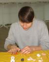 war. Dann fingen wir an, unserer jeweiligen Geschichte entsprechend bestimmte Knetfiguren herauszuarbeiten. Das gestaltete sich schwerer, als wir zuerst dachten, aber nach einiger Zeit hatten dann doch alle eine schöne Figur erstellt. Als Nächstes machten wir sehr viele Bilder, auf denen wir die einzelnen Figuren mal nur um Millimeter und mal um ganze Zentimeter verschoben, je nachdem wie schnell die Bewegung dann im Resultat werden sollte. Das hat wirklich sehr viel Spaß gemacht.