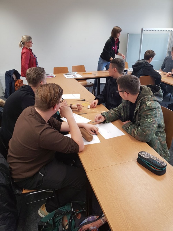 wir mithilfe der Studenten des Studiengangs Stadt- und Regionalplanung verschiedene Stadtkarten von Finsterwalde. Danach versuchten wir uns als kleine Bauingenieure in zwei Gruppen und bauten mit rohen Spaghetti und Heißkleber unterschiedliche Brücken. Nach einer Mittagspause fuhren wir mit dem Bus zum 2. Teil der Universität – den Campus Sachsendorf. Dort angekommen bekamen wir eine Führung durch die riesigen Versuchsräume für die Haus- und Heiztechnik. Wir konnten an diesem Tag viel entdecken, die BTU besser kennenlernen und unsere Vorstellungen von einer Universität und dem Uni-Leben erweitern.