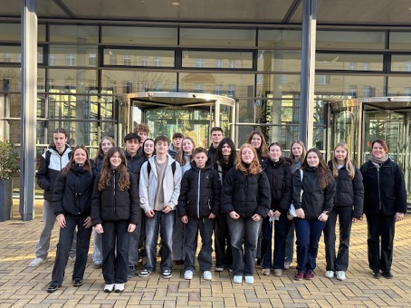 Am Freitag, dem 21.11.2025, machte sich unsere 9. Klasse auf den Weg nach Berlin. Schon am Bahnhof merkte man, dass der Tag etwas Besonderes werden würde, denn alle waren gut gelaunt und gespannt auf das, was uns erwarten würde. Gegen 10:30 Uhr stiegen wir in den Zug, der jedoch schon sehr überfüllt war. Viele von uns saßen im Gang oder auf Treppen, aber unsere gute Laune ließen wir uns nicht nehmen. Wir unterhielten uns lautstark, sangen spontan Lieder und lachten über einige überraschende Jugendgeschichten unserer Lehrkräfte. Dadurch verging die eigentlich unbequeme Fahrt viel schneller als gedacht.