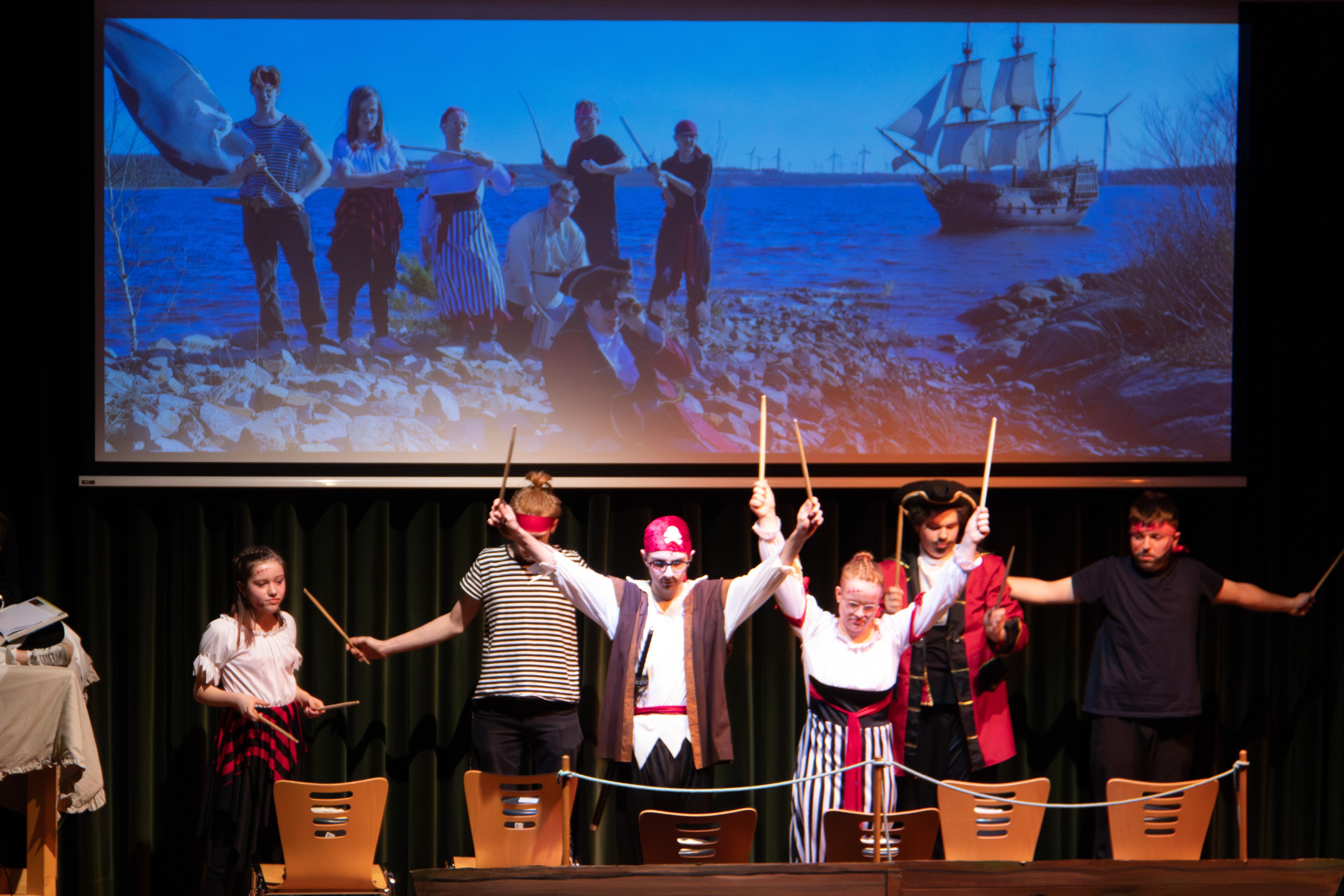 Ein besonderes Lob verdienen Franz Hafra und Niclas Eisenbarth, die rechte und linke Hand des Captains. Franz ist schon seit Beginn des Projektes dabei. Niclas konnte auch dieses Mal wieder seine Tanzkünste, diesmal zu Michael Jacksons „They don´t care about us“, unter Beweis stellen. Im Gegensatz dazu nahmen Nils Jentsch und Mia Samaschke, die seine treue Gefährtin Tinkerbell spielte, zum ersten Mal teil. Hoffentlich wird ihr bemerkenswertes Talent auch zukünftigen Aufführungen erhalten bleiben.