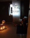 Gleichzeitig gestalteten die Schüler ihre eigenen Räume im restlichen Haus. Rike Fröhlich ließ einen surrealistischen Traumraum entstehen. Hineingehen und loslassen. Selbstgedrehte Filmaufnahmen, Detailfotografien an den Wänden, eine Matratze, gedämpftes Licht und leise klingende Musik forderten sanft zum Innehalten auf.
