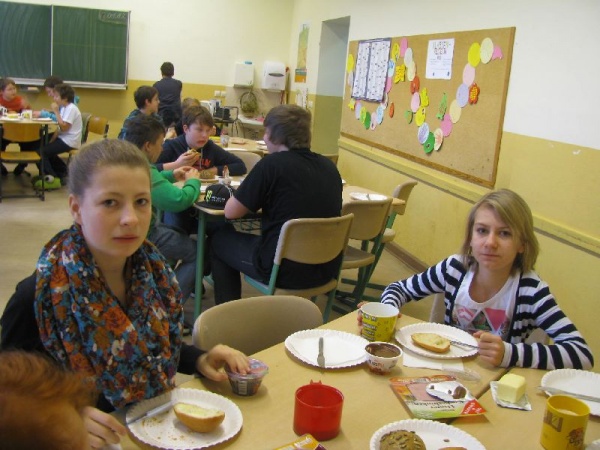 Wer nicht drehte oder gerade nicht gebraucht wurde, machte es sich im Klassenraum gemütlich oder sah einen Film. Die Kulisse hätte nicht besser sein können!!! Gegen 3:00 Uhr nachts war dann endlich die letzte Szene im Kasten. Vielen Dank an Dennis Hetzschold, der uns mit viel Geduld mit seiner Kamera begleitete. Wir fielen erschöpft, aber glücklich, es geschafft zu haben, ins Bett. Alle hatten eine kurze Nacht und am Morgen aßen wir gemeinsam Frühstück. Schließlich machten wir uns zusammen ans Aufräumen der Klassenräume. Gegen 10 Uhr wurden wir von den Eltern abgeholt.